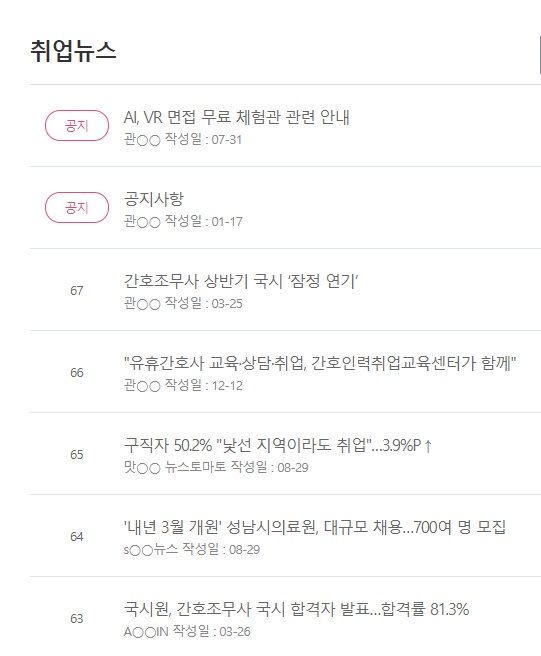 ๋ฉ์ธ ํํ์ด์ง ๋งจ ํ๋จ์ ๋ณด์๋ฉด ์ทจ์ ์๋ฃ์ค ๋ฒํผ์ด ์์ต๋๋ค. ์ด๊ฑธ ๋๋ฌ์ ๋ค์ด๊ฐ์๋ฉด ๋ค์ํ ์ทจ์ ๊ด๋ จ ์ข์ ์ ๋ณด๋ค์ ๋ณด์ค ์ ์๊ฒ ํด ๋์๋๋ฐ์.