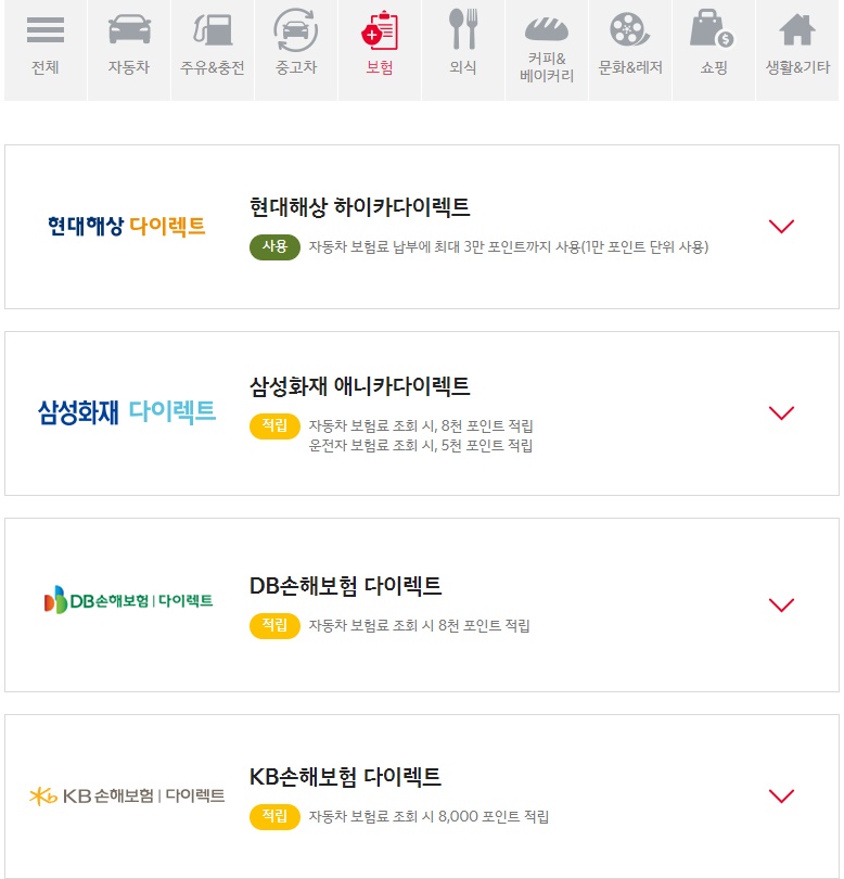 3) ๋ณดํ์กฐํ ์ ํฌ์ธํธ ์ ๋ฆฝ ๊ฐ๋ฅ - ํ๋ํด์ ํ์ด์นด ๋๋ ํธ, ์ผ์ฑํ์ฌ ์ ๋์นด ๋ค์ด๋ ํธ, DB์ํด๋ณดํ ๋ค์ด๋ ํธ, KB์ํด๋ณดํ ๋ค์ด๋ ํธ