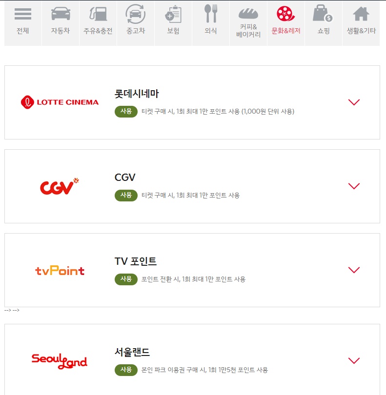 6) ์ํ, ๊ทน์ฅ ์ฌ์ฉ ๊ฐ๋ฅ - ๋กฏ๋ฐ์๋ค๋ง, CGV, ์์ธ๋๋ ํฌ์ธํธ ์ฌ์ฉ