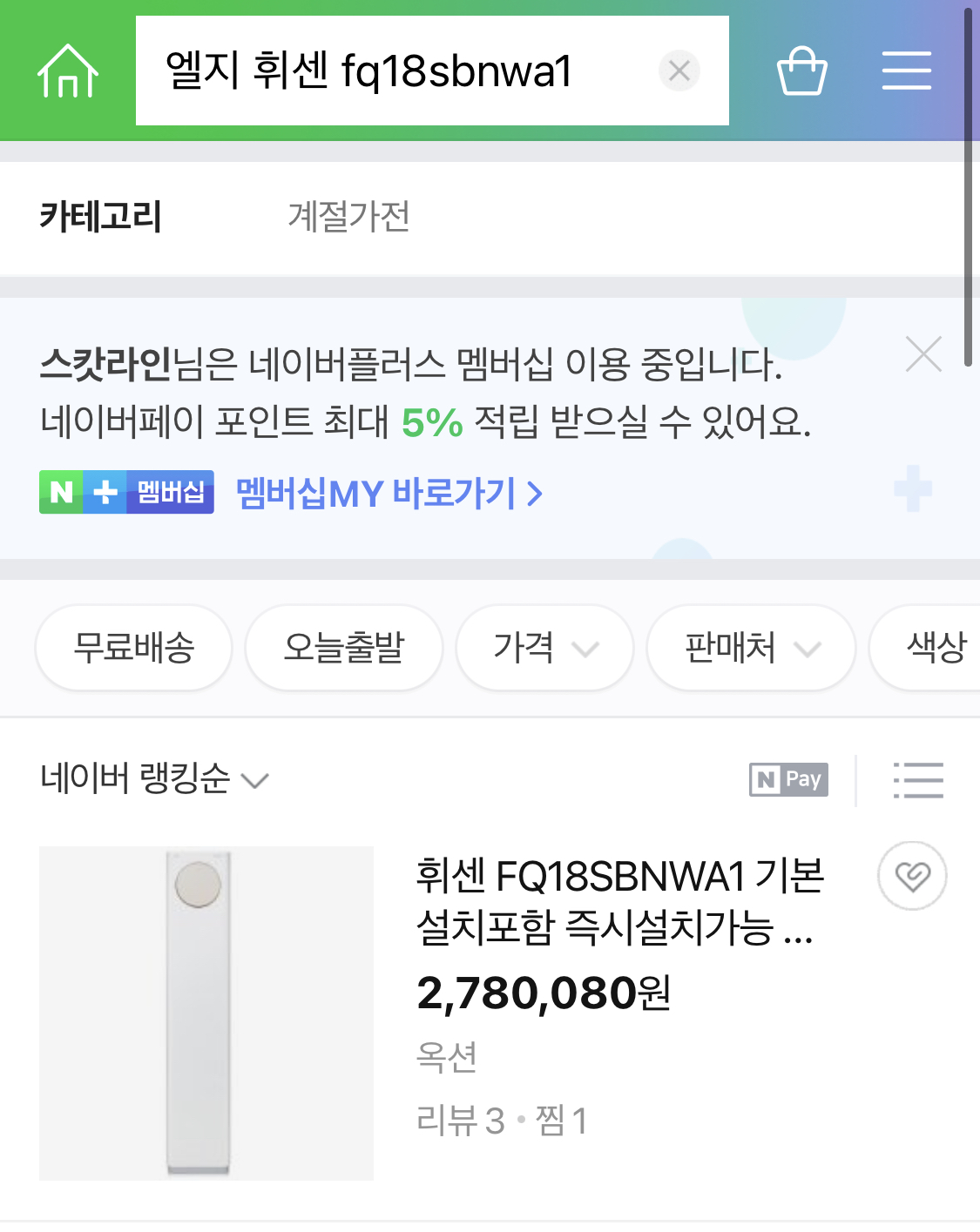 μ€λμ μ κ° κ΅¬λ§€ν μμ§ νμΌ FQ18SBNWA1 νμμμ΄μ»¨(μ€νμ